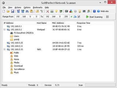 SoftPerfect Network Scanner is a fast universal IPv4/IPv6 scanner with an extensive range of options and advanced features for system administrators and general users interested in computer security. This powerful program can ping computers, scan ports, discover shared folders and comes with flexible filtering and display options. It can retrieve practically any information about network devices via WMI, SNMP, HTTP, SSH and PowerShell.