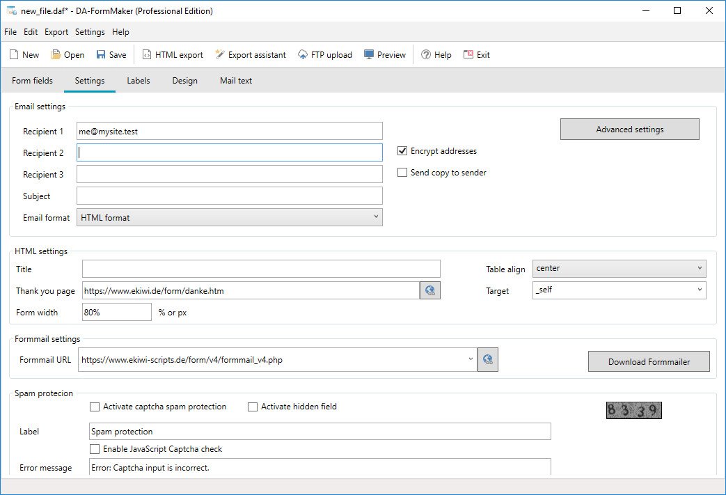 Customizable export settings